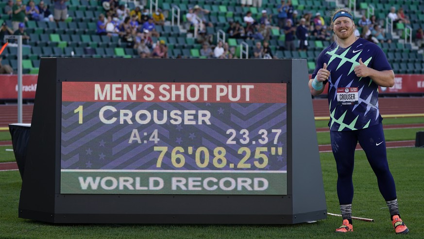 Es war ein Triumph mit Ansage. Nicht weil Crouser bereits 2016 in Rio de Janeiro Olympiasieger wurde. Sondern weil er eben diesen Weltrekord erst vor eineinhalb Monaten an sich gerissen hatte, nachdem er sich zuvor Schritt für Schritt der 31 Jahre alten Marke von Landsmann Randy Barnes angenähert hatte.