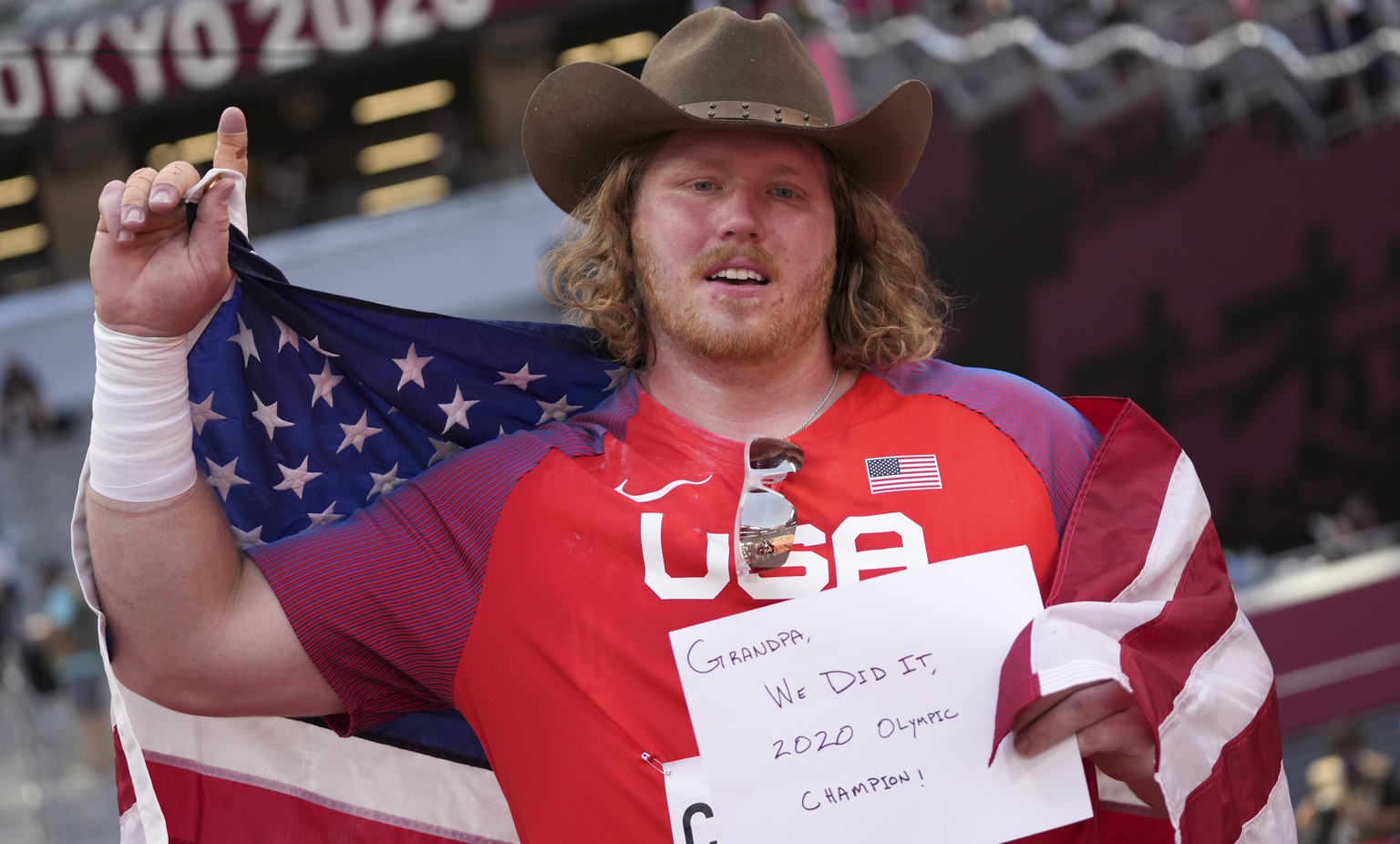 In Tokio sei der richtige Umgang mit Hitze der Schlüssel zum Erfolg gewesen, sagte er NBC. «Meine Einstellung stimmte, ich war im Kopf voll bereit.» Den Erfolg widmete er Grossvater Larry, der ihn als Kind mit dem Kugelstoss-Virus infizierte und der einen Tag vor der Abreise an die Olympischen Spiele verstarb.