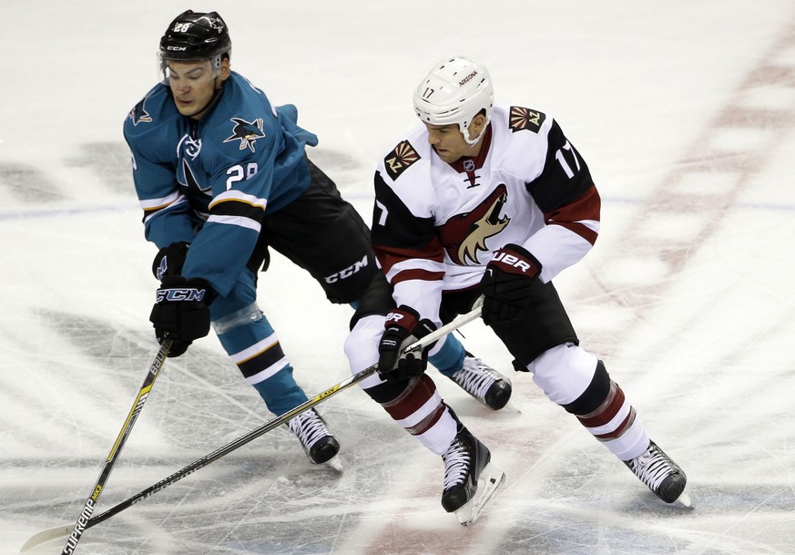 Meier im Sharks-Dress, doch es handelt sich um ein Bild aus einem Pre-Season-Game.Bild: Marcio Jose Sanchez/AP/KEYSTONE