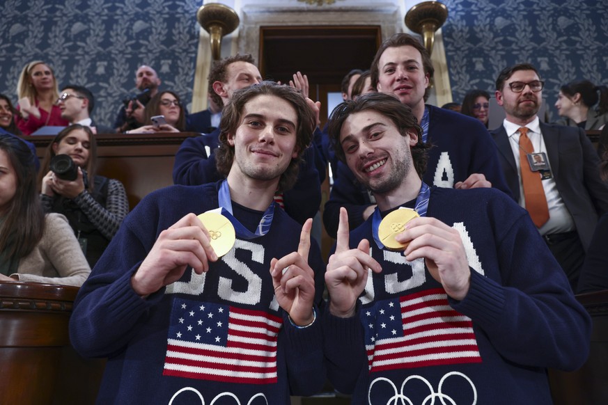 Das US-Nationalteam im Eishockey liess sich in der Nacht auf Mittwoch bei Donald Trumps Rede zur Lage der Nation feiern. Sowohl die Republikaner als auch die Demokraten begrüssten die Stars mit stehenden Ovationen. Der US-Präsident lud die Stars aufgrund des Gewinns der Goldmedaille bei den Olympischen Spielen ein und nahm dies auch zum Anlass vor dem US-Kongress zu verkünden: «Unser Land gewinnt wieder!»