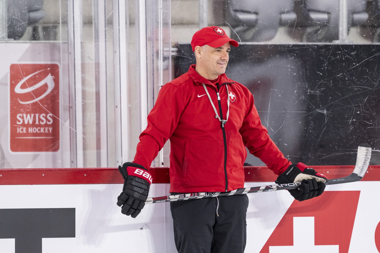 Der neue Head Coach der Schweizer Eishockey Nationalmannschaft, Jan Cadieux, leitet das Training des Nationalteams, am Mittwoch, 22. April 2026 in der Tissot-Arena in Biel. (KEYSTONE/Alessandro della  ...