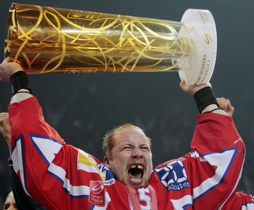 Meisterpokal und Zahnlücke: Mathias Seger mit den Merkmalen eines erfolgreichen Eishockeyspielers.Bild: Photopress