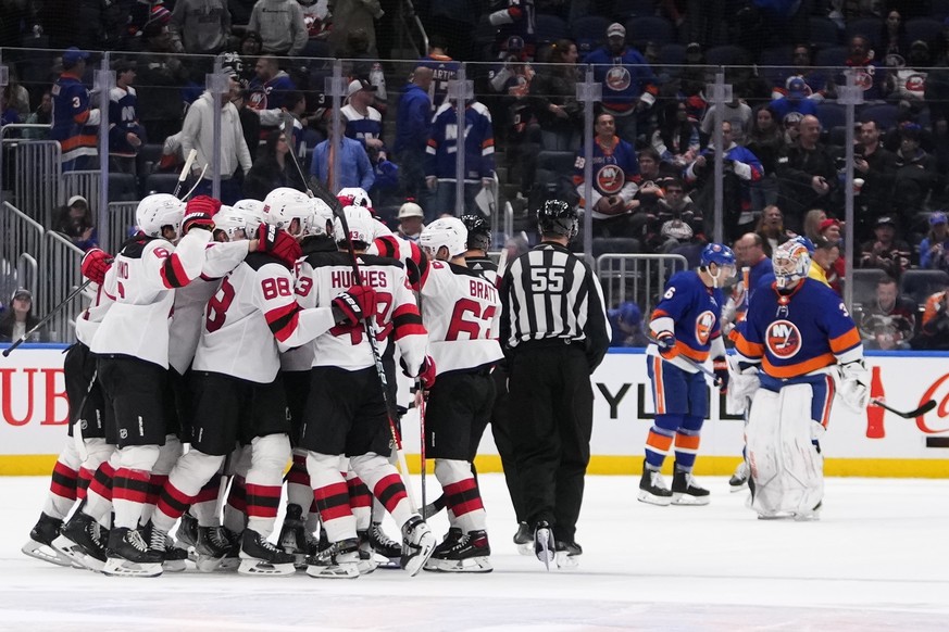 Die New Jersey Devils feiern gegen die New York Islanders ihren zweiten Saisonerfolg. Beim 5:4-Sieg nach Verlängerung stehen alle vier Schweizer auf dem Eis.