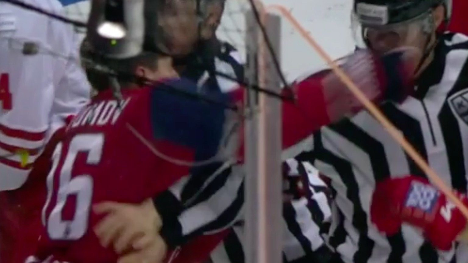 Artur Kajumow schlägt einen Schiedsrichter voll ins Gesicht.bild: khl