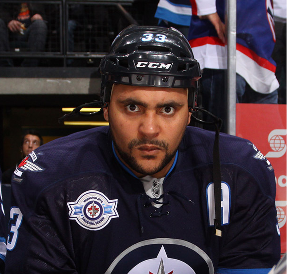 Dustin Byfuglien ist für seine krachenden Checks berühmt-berüchtigt (hier erzählt ein Gegenspieler wie sich ein Check von ihm anfühlt). Der Amerikaner bringt bei einer Körpergrösse von 1,96 stolze 120 Kilogramm auf die Waage. Fast noch bekannter ist er aber für seine lustigen Aktionen abseits des Spielfelds.
