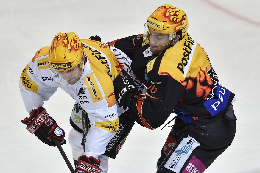 - Die Equipe von Guy Boucher hingegen wählte durchwegs den direkten Weg in den Slot. In der 15. Minute verschaffte Simon Bodenmann dem SCB mit seinem ersten Treffer seit dem Transfer von Kloten in die Hauptstadt den ersten Vorteil. Nachdem Fribourg eine erstklassige Konter-Offerte ausgeschlagen hatte, erhöhte Altmeister Martin Plüss mit seinem fünften Saisontor auf die kursweisende Marke von 2:0.