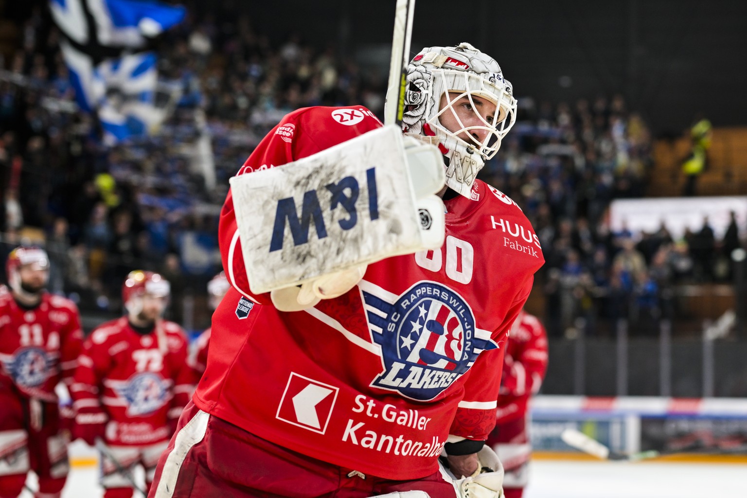 Torhueter Melvin Nyffeler (SCRJ) nach dem zweiten Playoff-Viertelfinalspiel der National League zwischen den Rapperswil-Jona Lakers (SCRJ) und dem HC Fribourg-Gotteron (HCFG), am Sonntag, 22. Maerz 20 ...