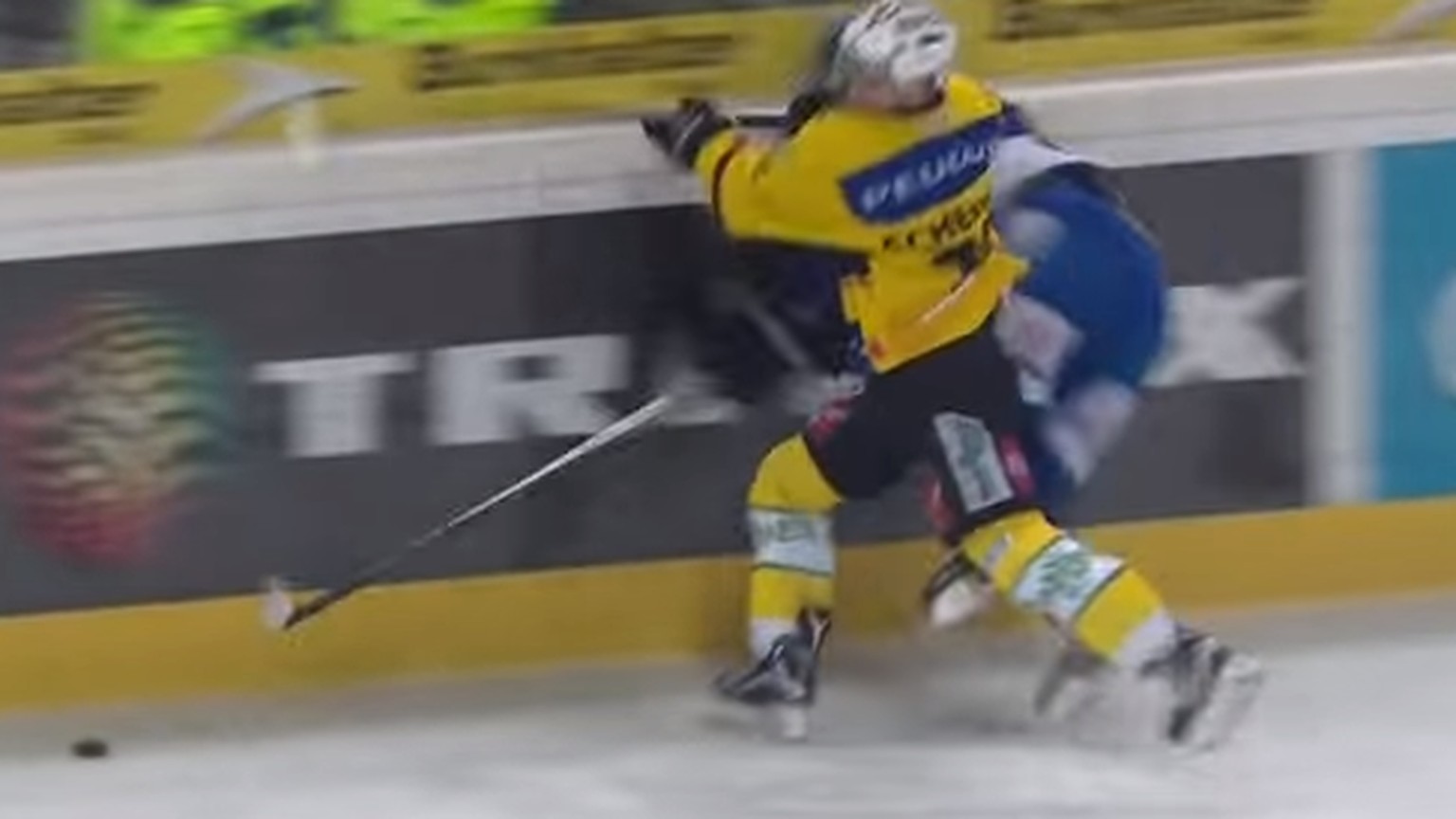 SCB-Scherwey knallt den Davoser Heldner in die Bande.