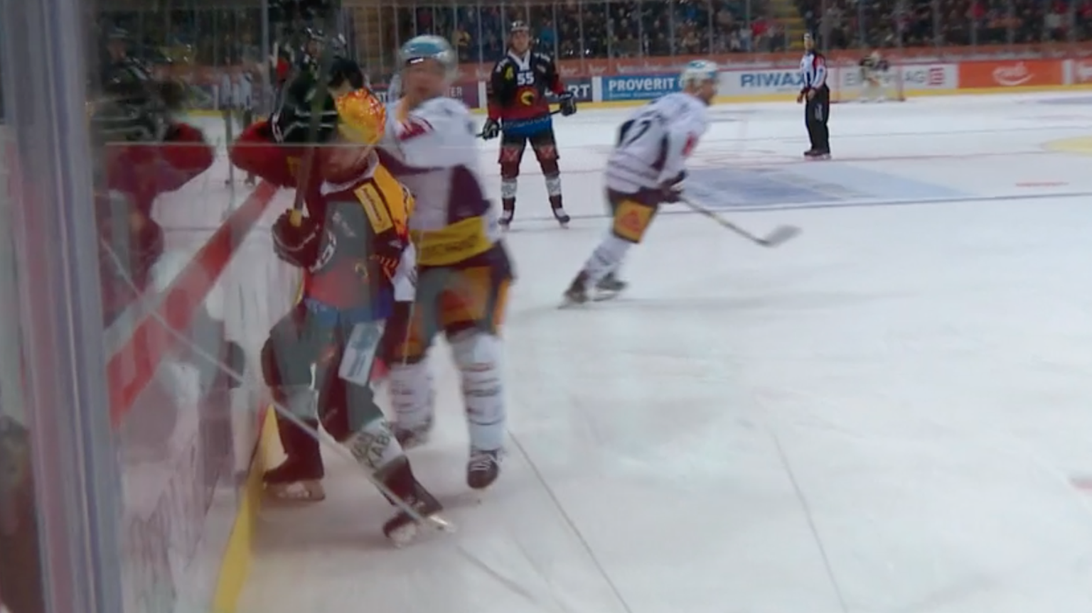Es war also «nur» ein Bandencheck, der auch mit 2 plus 10 Minuten geahndet werden kann. Stark vereinfacht gesagt: Bandencheck bedeutet, dass ein Spieler bei einem an und für sich korrekten Check gegen die Bande geworfen wird.
