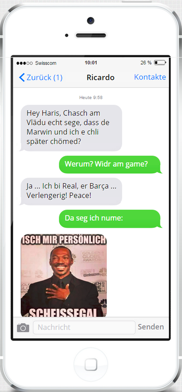 Und Yann Sommer? Unser Nati-Keeper ist schon den ganzen Morgen so ruhig, starrt aber andauernd in sein Smart-Phone. Was er wohl treibt?