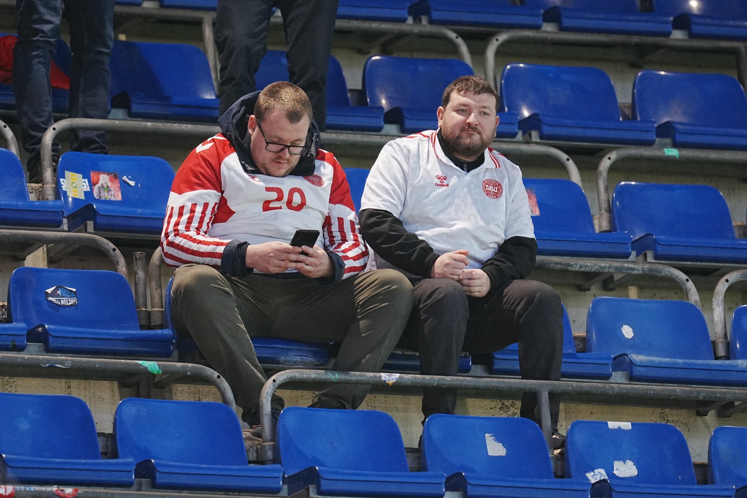 epa12862306 Danish soccer fans before the FIFA World Cup 2026 European playoff match between the Czech Republic and Denmark at epet ARENA in Prague, Czech Republic, 31 March 2026. EPA/Liselotte Sabroe ...