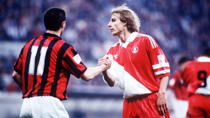 Jürgen Klinsmann stürmt 1993/94 mit der AS Monaco bis in die Halbfinals. Dort begrüsst der Deutsche den Milan-Angreifer Daniele Massaro – der erneut in den Final einzieht.