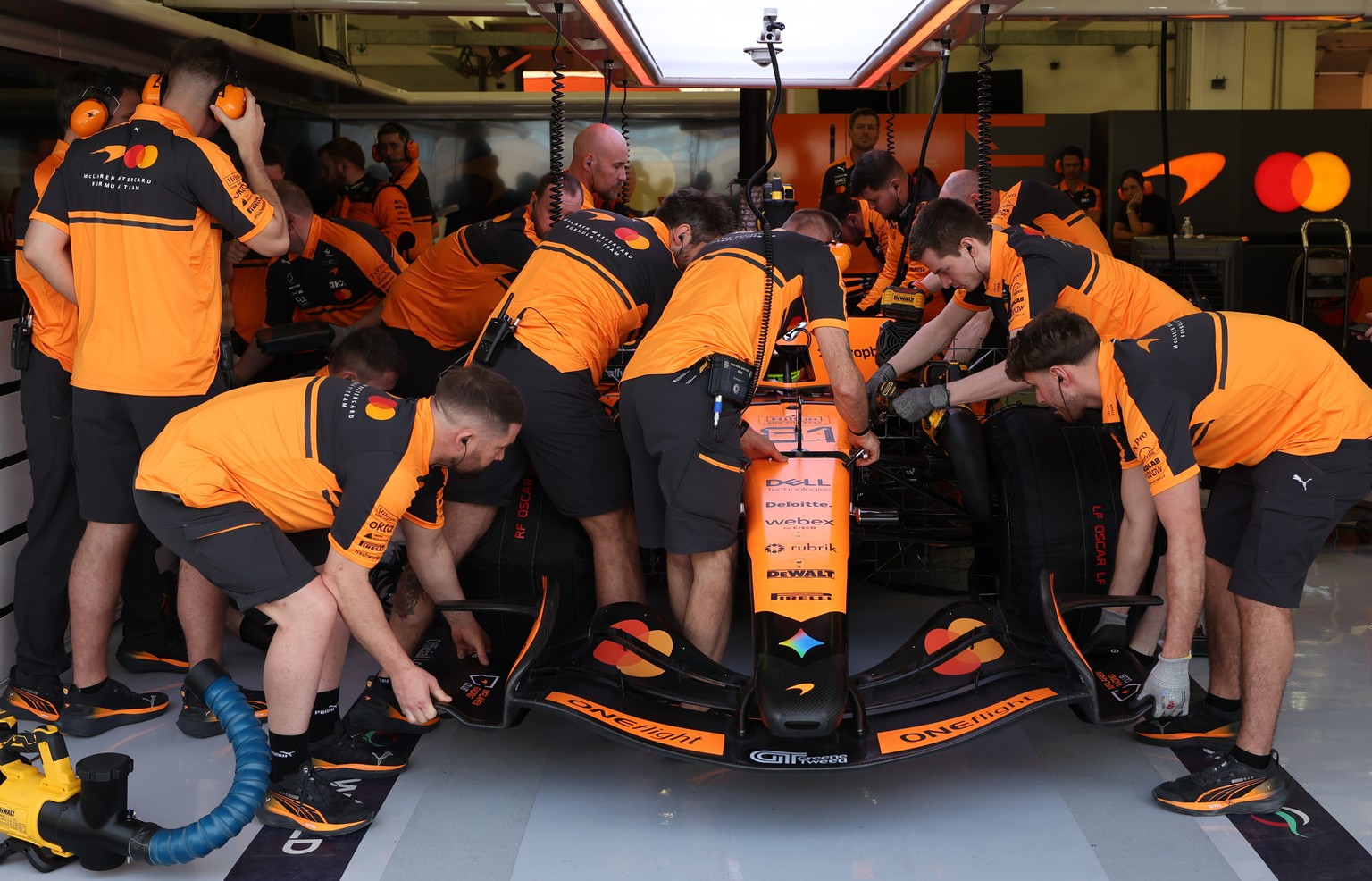 Mechaniker kümmern sich um den McLaren von Oscar Piastri.Bild: keystone