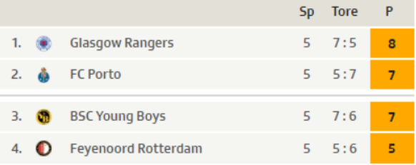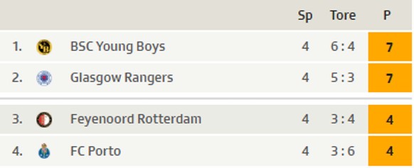 Die Ausgangslage ist für die Berner nun kompliziert. Der erste Matchball wurde vergeben. In zwei Wochen in Glasgow bietet sich die zweite und letzte Chance, die Sechzehntelfinals doch noch zu erreichen. Die Young Boys müssen bei den Glasgow Rangers gewinnen – oder hoffen, dass Porto daheim gegen Schlusslicht Feyenoord Rotterdam verliert, dann würde den Bernern in Glasgow auch ein Unentschieden zum Weiterkommen reichen.