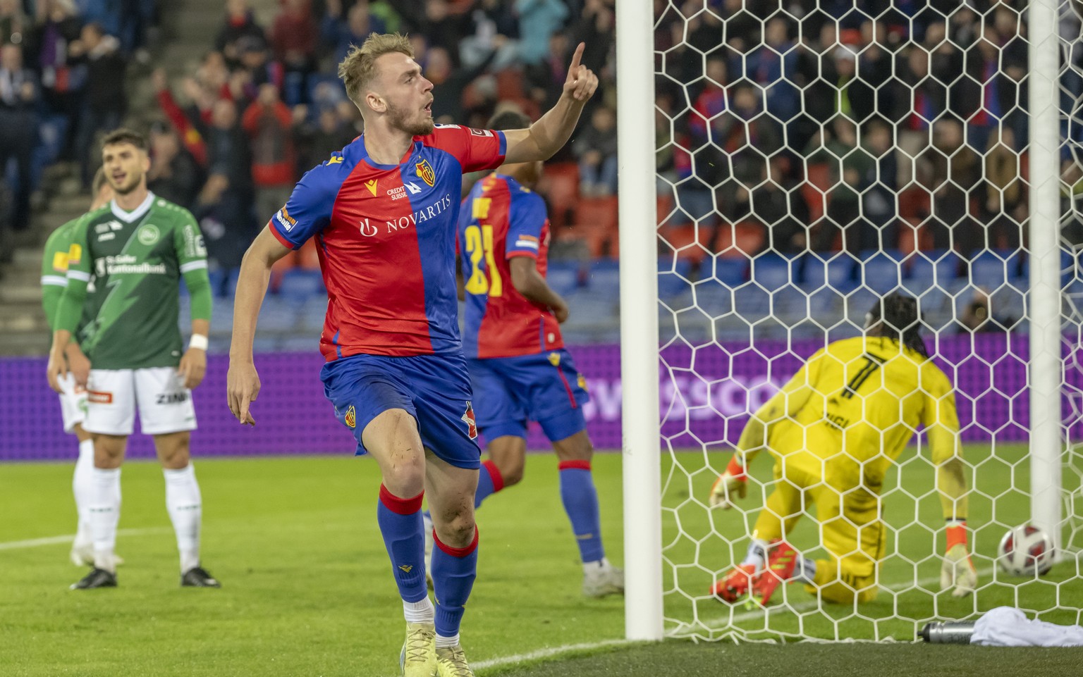 Bemerkungen: Basel ohne Lopez, Marchand und Tushi (alle verletzt). St.Gallen ohne Besio, Schubert und Von Moos (alle verletzt). 26. Pfostenschuss Akolo. 36. Rote Karte gegen Stillhart (Notbremse). 71. Hitz pariert Foulpenalty von Görtler, Görtler versenkt Nachschuss. Verwarnungen: 22. Burger (Foul/im nächsten Spiel gesperrt). 24. Maglica (Foul/im nächsten Spiel gesperrt). 30. Akolo (Foul). 33. Schmidt (Schwalbe). 36. Zigi (Reklamieren). 38. Görtler (Foul). 79. Comas (Foul). 87. Xhaka (Foul). 93. Augustin (Foul). 94. Lang (Foul). (ram/sda)