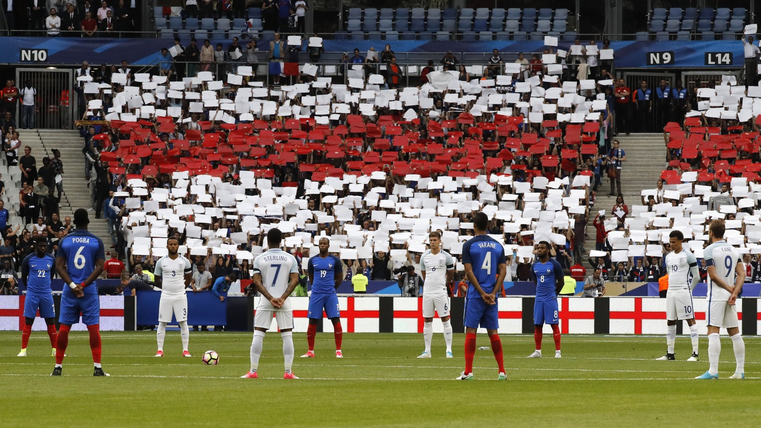 Als sich die beiden Mannschaften anschickten, das Spielfeld zu betreten, wurden sie von einem singenden Stadion begrüsst. Französische und englische Anhänger gaben gemeinsam den Oasis-Klassiker «Don't Look Back In Anger» zum Besten: