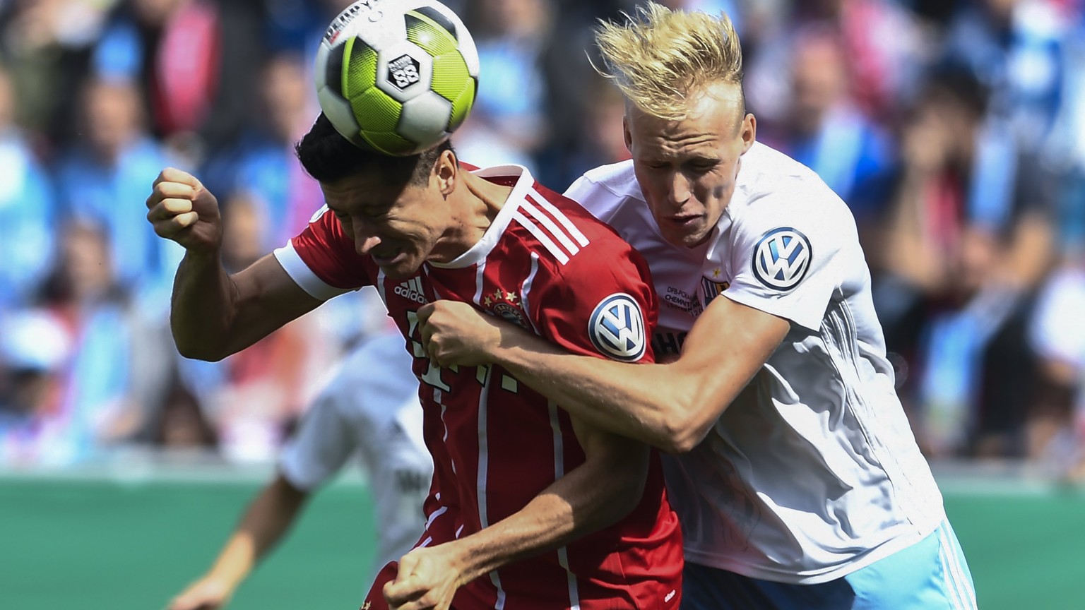 Bayern München siegt beim Drittligisten Chemnitzer FC deutlich mit 5:0. Robert Lewandowski trifft im Stadion an der Gellertstrasse doppelt, die weiteren Tore für den deutschen Rekordmeister erzielen Kingsley Coman, Franck Ribéry und Mats Hummels: