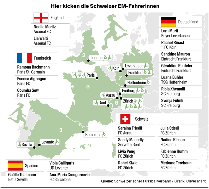 Während die Nationalspielerinnen zu Stars für die kommende Generation werden, spielen einige von ihnen in ihrem Alltag bei den grössten Klubs der Welt. Bei Paris Saint-Germain, beim FC Barcelona, bei Arsenal.