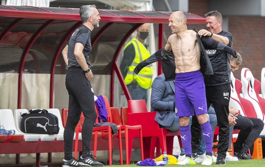 Arjen Robben nimmt im Saisonendspurt der niederländischen Fussball-Meisterschaft noch einmal Schwung auf. Der verletzungsgeplagte 37-Jährige stand erstmals seit seiner Rückkehr zum FC Groningen im vergangenen Sommer in der Startelf und steuerte zwei Vorlagen zum 4:0 beim FC Emmen bei. Robben legte das 2:0 und 3:0 von Alessio Da Cruz (52./62.) auf.