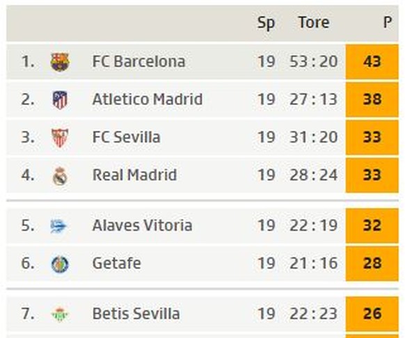 Nach dem Heimsieg liegt Atlético noch zwei Punkte hinter dem FC Barcelona. Der Leader und Meister spielt um 18.30 Uhr zuhause gegen Eibar. Real Madrid muss später am Abend (20.45 Uhr) bei Betis Sevilla ran.