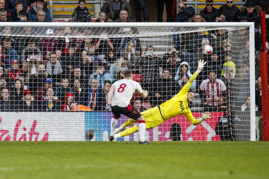 Die Tottenham Hostspur verspielen in Southampton einen 3:1-Vorsprung. Für die Spurs trafen Rechtsverteidiger Pedro Porro, Torjäger Harry Kane und der Kroate Ivan Perisic. Bis in die Nachspielzeit führten die Gäste knapp mit 3:2, ehe James Ward-Prowse den Hausherren mit einem Penalty noch einen Punkt bescherte.