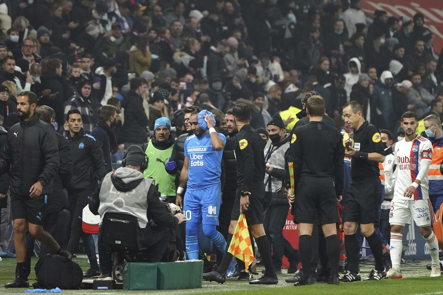 Dimitri Payet wollte in der 4. Minute einen Eckball ausführen, als er von einer Wasserflasche am Kopf getroffen wurde. Der 34-Jährige sank zu Boden, wurde noch auf dem Platz betreut, ehe Schiedsrichter Ruddy Buquet die beiden Teams in die Kabine schickte.