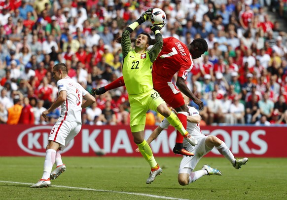 Fabianski glänzt im Tor der Polen, hier klaut er Derdiyok ein sicher geglaubtes Tor