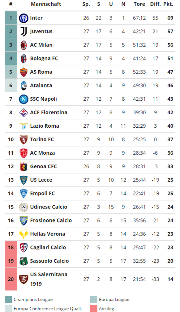 Bemerkungen: 88. Osimhen (Napoli) verschiesst Penalty (Raspadori trifft im Nachschuss).