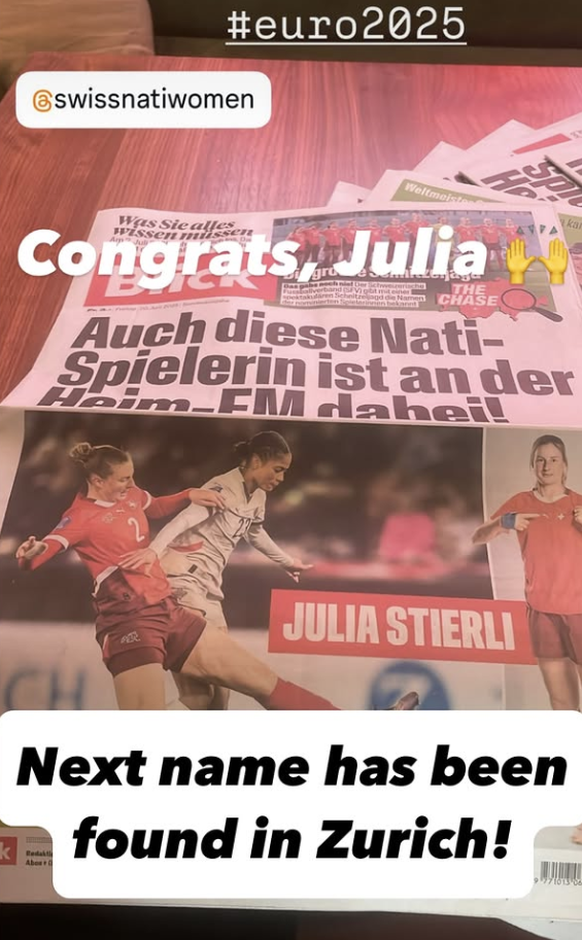 Die Verteidigerin Julia Stierli ist an der EM ebenfalls mit dabei. Ihr Name wurde in Zürich entdeckt – und zwar in einer gedruckten Ausgabe des «Blick».