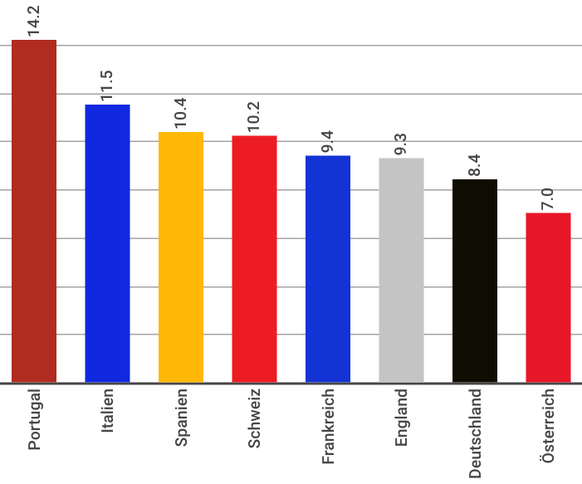 Mit 10,2 ist die Schweizer Super League nahe an diesem Mittelwert. An der Spitze liegen mit mehr als 14 neuen Spielern pro Saison die Ligen Portugals, Bulgariens und Zyperns. Am anderen Ende der Skala findet man die österreichische Bundesliga, wo im Sommer 2016 im Schnitt nur 7,0 neue Spieler engagiert wurden.