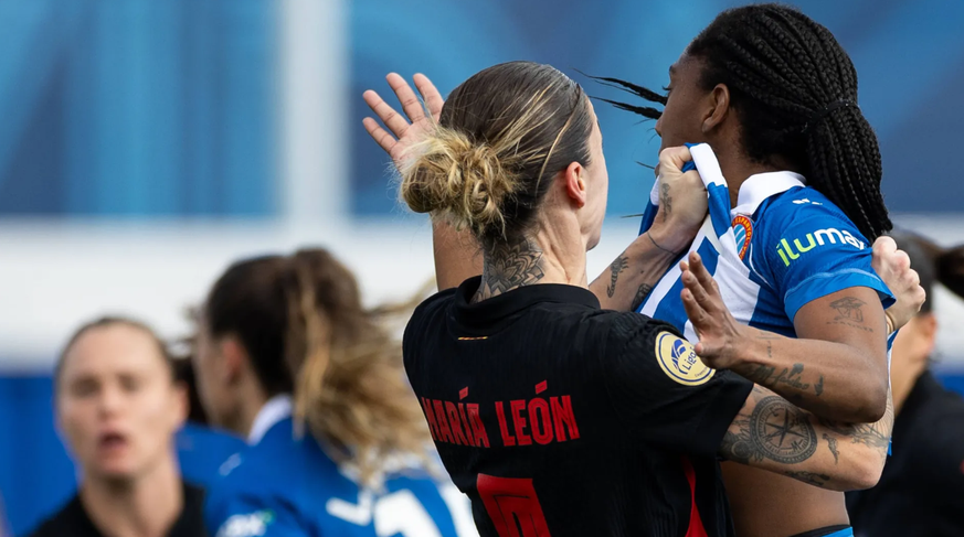 Skandal in Spanien: Barças Mapi León griff ihrer Gegenspielerin im Derby zwischen die Beine. Ausserdem soll sie eine provokante Frage gestellt haben.