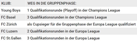 Die Schweizer Klubs im Europacup:
