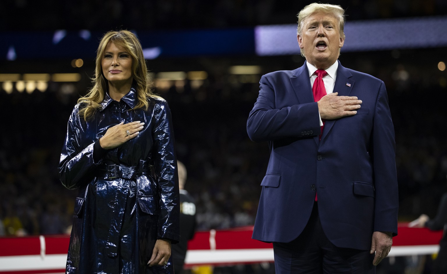 Jetzt hat sich auch der US-Präsident selbst bei der Nationalhymne danebenbenommen, wie ein Video auf Twitter zeigt. Der kurze Clip ist bei einer Super-Bowl-Party in seinem Golf Club in Miami entstanden. Mit dabei waren auch seine Frau Melania und der gemeinsame Sohn Barron. Während die beiden die Hand aufs Herz gelegt haben, gestikuliert Trump wild herum. Er hebt die Arme über den Kopf und imitiert offenbar einen Dirigenten.