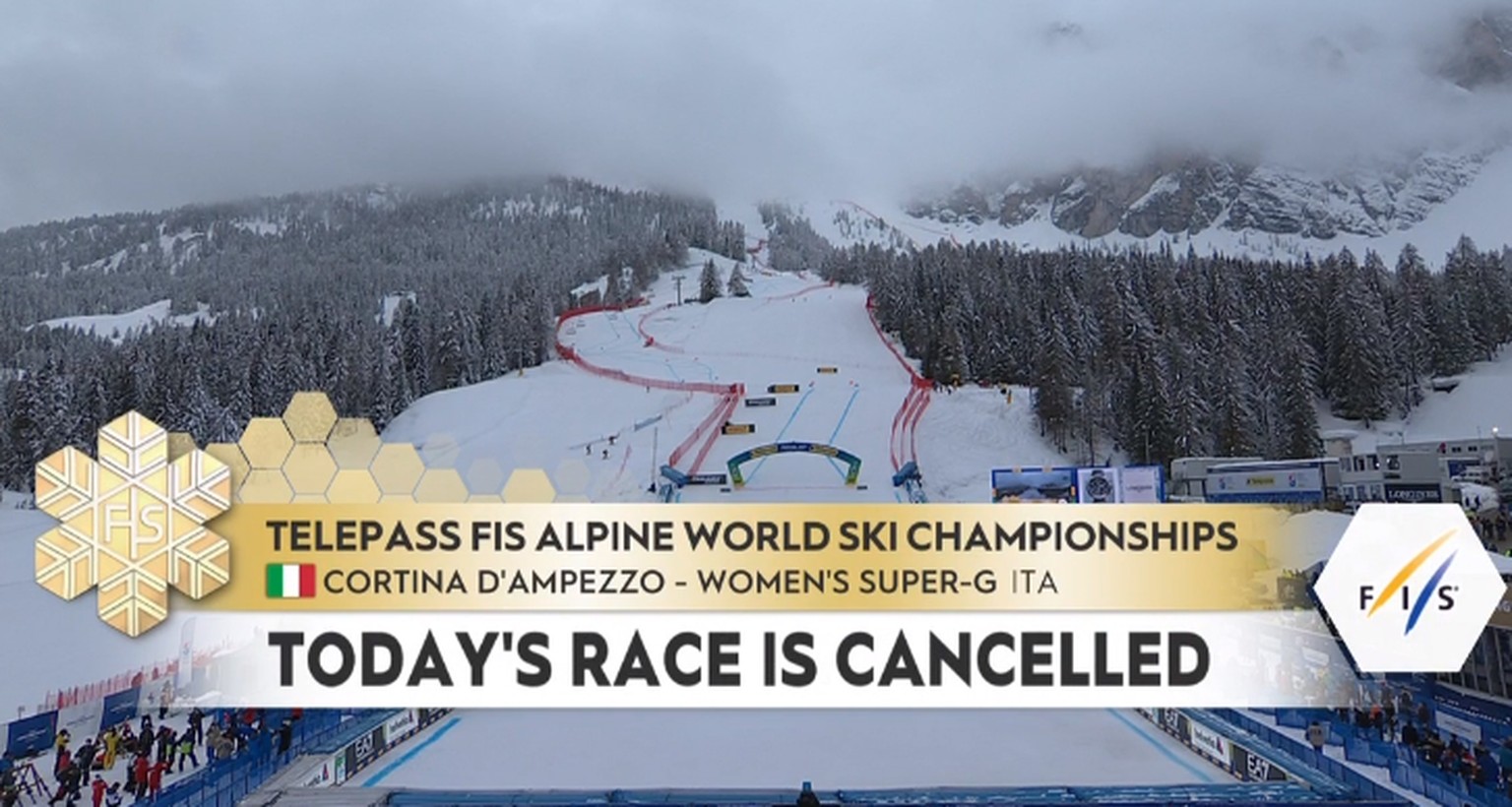 ❗️Due to fog the jury together with the LOC and all the stakeholders have decided to cancel the women’s super G at #Cortina2021 @fisalpine World Ski Championships.
