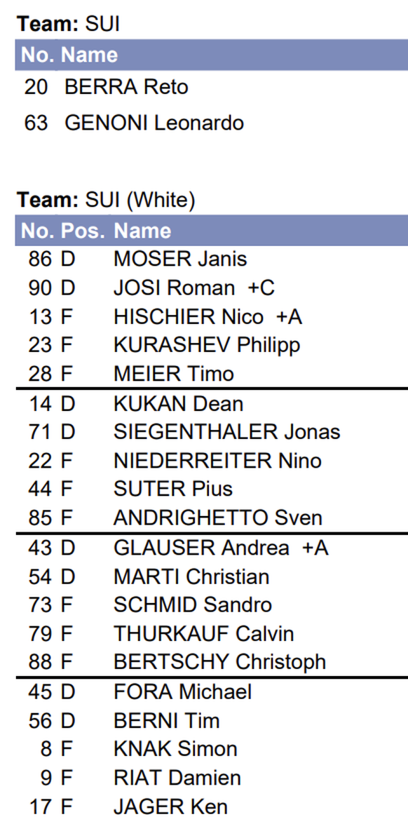 Denis Malgin kommt aufgrund seiner Schulterverletzung auch heute nicht zum Einsatz. Im Tor steht Leonardo Genoni, während Reto Berra Back-Up ist. Akira Schmid sitzt nur auf der Tribüne.