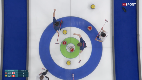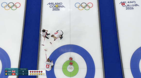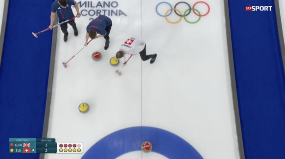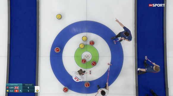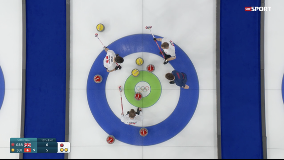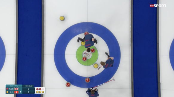 Das ist jetzt eine richtig hochstehende Curling-Partie. Auf jeden guten Stein des einen Teams, findet das andere eine Antwort. Beim zweitletzen Stein gelingt Benoît Schwarz-van Berkel ein Meisterstück. Er spielt knapp an der Guard vorbei und stupst den roten britischen Stein raus. Vor dem letzten Stein des britischen Skips Bruce Mouat liegt die Schweiz mit drei Steinen Shot. Aber auch der antwortet mit einem Traumstein. Er befördert alle drei Schweizer Steine aus dem Haus und bringt die Schweiz in eine komplizierte Situation. Schwarz-van Berkel muss einen Stein in die Mitte spielen. Schade, die Briten geben sich einfach nicht geschlagen.