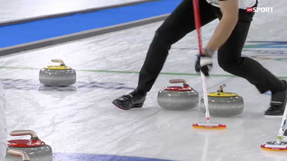 Die Lage spitzt sich zu. Grant Hardie gelingt der Hit-and-Roll für einmal nicht ganz nach Wunsch. Der eigenen Stein bleibt etwas weiter vorne liegen als geplant. Das eröffnet der Schweiz die Möglichkeit zum Take-Out.