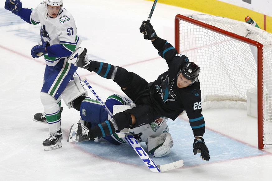 Die San Jose Sharks verlieren daheim gegen die Vancouver Canucks 4:5 nach Verlängerung. Dass für die Sharks ein Punkt herausschaut, ist das Verdienst von Timo Meier, der zweimal trifft und einmal assistiert.