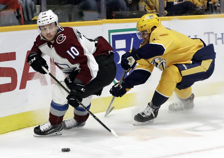 Sven Andrighetto entschied in der NHL mit den Colorado Avalanche das Schweizer Duell mit Roman Josi, Kevin Fiala und Yannick Weber von den Nashville Predators gleich mit 5:0 für sich. Der Zürcher Stürmer liess sich beim vierten Sieg in Folge von Colorado einen Assist gutschreiben. Er punktete damit im dritten aufeinanderfolgenden Spiel.