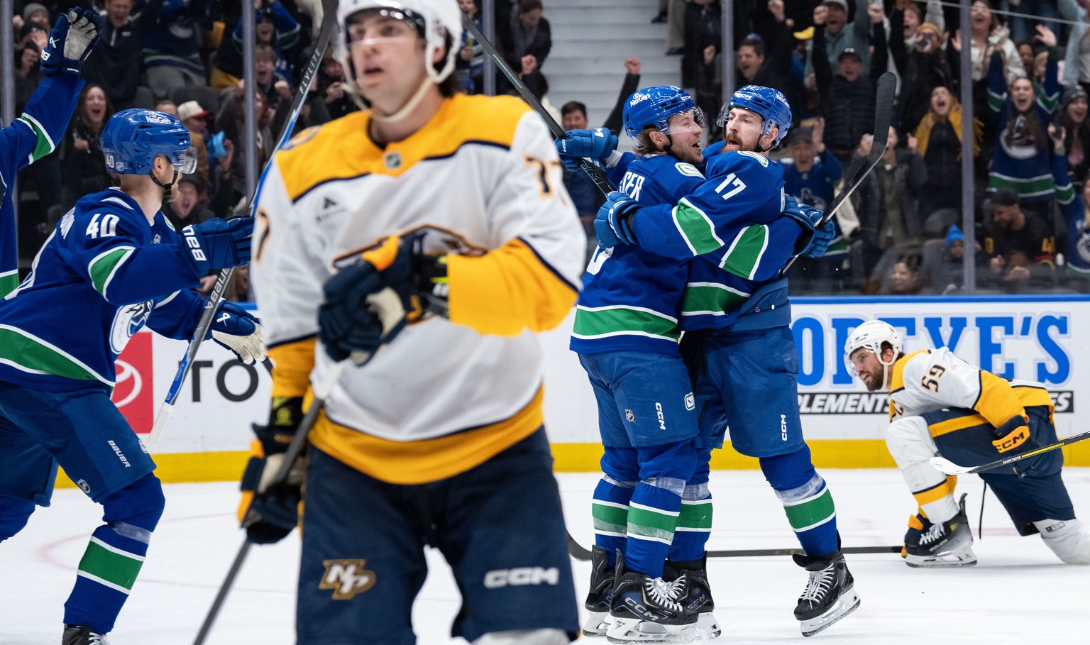 Dabei verlief das Gastspiel in Vancouver für die Predators lange Zeit nach Plan. Bis knapp vier Minuten vor Schluss führten sie mit 3:1, ehe sich die Canucks mit zwei späten Toren in die Verlängerung retteten.