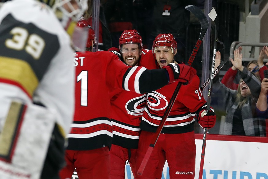 Nino Niederreiter gelingt sein zwölftes Tor der laufenden NHL-Saison. Der Churer Stürmer trifft beim 4:3-Sieg nach Verlängerung der Carolina Hurricanes gegen die Vegas Golden Knights zum 1:0.