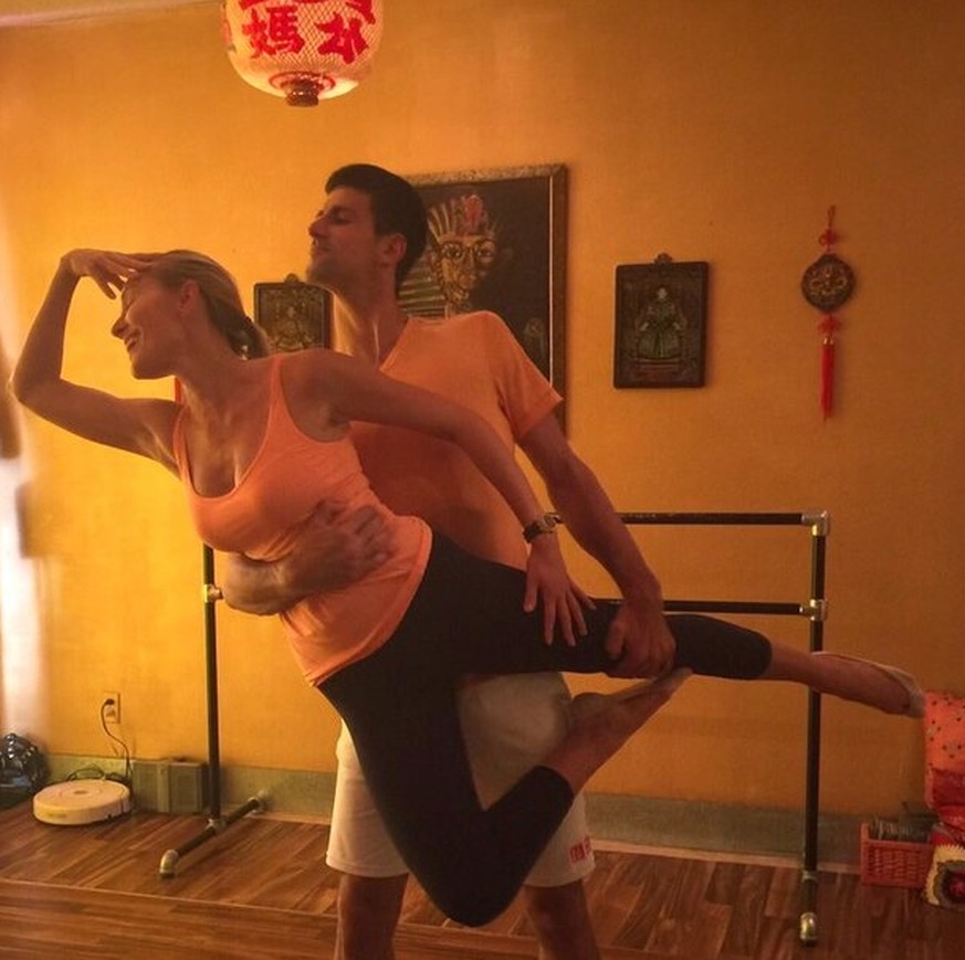 Wie schafft es dieser Novak Djokovic nur, immer so geschmeidig zu sein auf dem Tennisplatz? Jetzt haben wir die Antwort: Der Serbe macht Ballett. Er scheint grossen Spass zu haben, sich elegant mit Gattin Jelena durch den mit chinesischen Elementen dekorierten Raum zu bewegen.