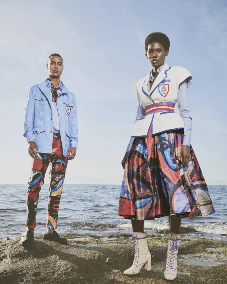 Die Delegation aus Haiti umfasst zwar nur zwölf Athletinnen und Athleten, wird an der Eröffnungszeremonie dank des eleganten und zugleich farbenfrohen Outfits der haitianisch-italienischen Designerin Stella Novarinohati trotzdem viel Aufmerksamkeit auf sich ziehen. Das Muster greift das Werk «Passage» des haitianischen Malers Philippe Dodard auf.