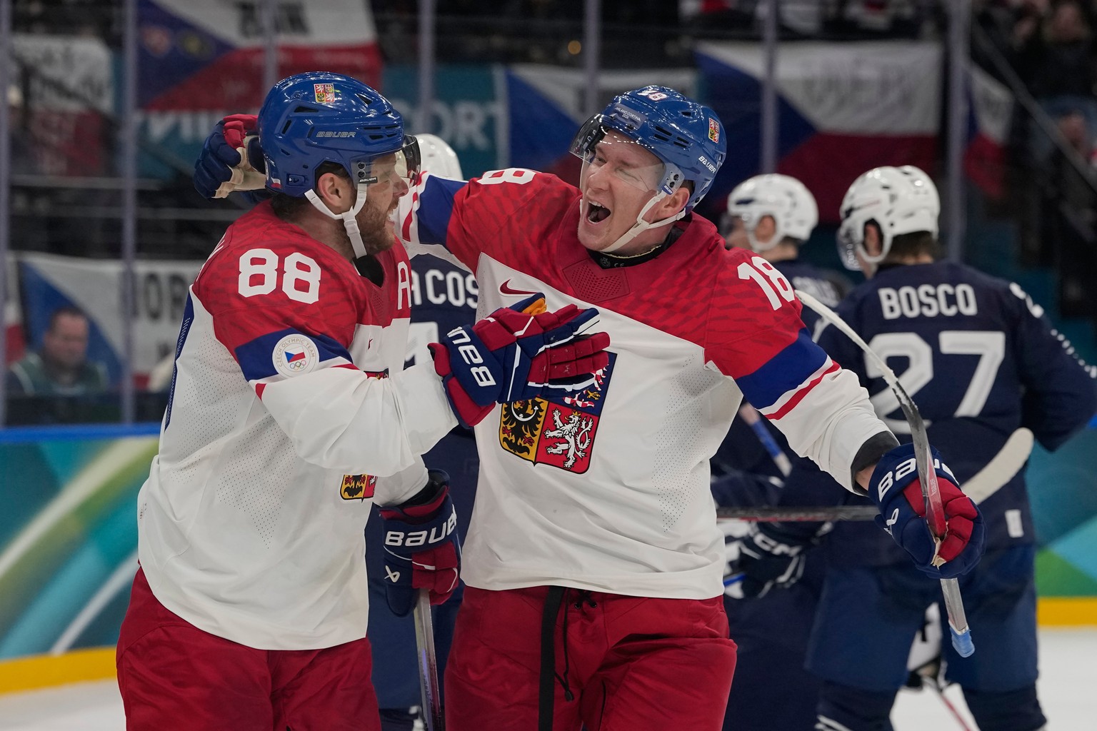 Die Tschechen reagierten noch im zweiten Drittel: Starstürmer David Pastrnak glich zum 3:3 (34.) aus, ehe der Davoser Stürmer Matej Stransky die Osteuropäer 32 Sekunden vor der zweiten Pause mit einem Tor in Unterzahl erneut in Führung schoss. Stransky hatte sich schon beim 2:0 von Michal Kempny (14.) einen Assist gutschreiben lassen. In der 42. Minute sorgten die einst in der Schweiz spielenden Filip Chlapik und Roman Cervenka mit einem Doppelschlag innert 48 Sekunden für die Vorentscheidung.