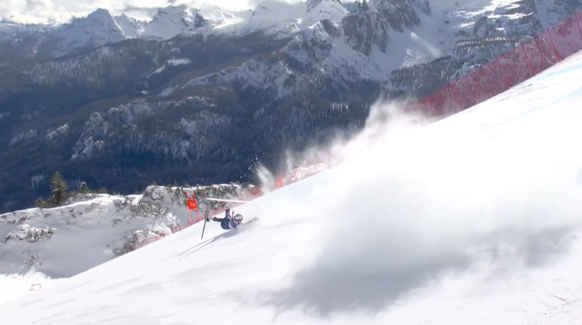 Und jetzt der grosse Auftrit von Lindsey Vonn mit gerissenem Kreuzband. Oh nein, sie stürzt! In der Traverse hängt sie an einem Tor an, verdreht sich in der Luft und schlägt hart auf der Piste auf und bleibt liegen. Mit einem gerissenen Kreuzband ist das natürlich gar nicht gut. Die Schmerzensschreie der 41-Jährigen sind über die Mikrofone zu hören.