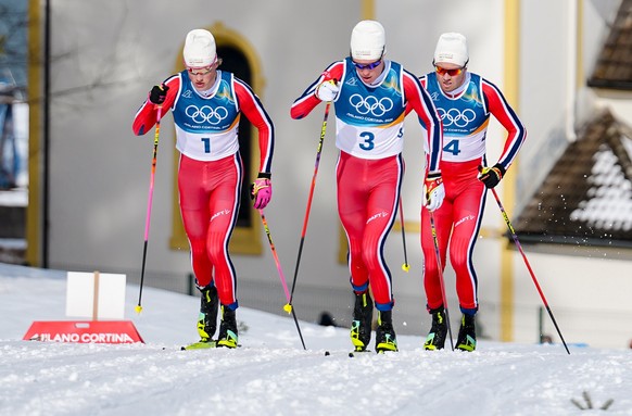 Norwegens Langläufer marschieren über 50 km klassisch einem Dreifachsieg entgegen. Nach 36 Kilometern liegen Martin Nyenget, Emil Iversen und Johannes Hösflot Klaebo weiterhin gemeinsam voran.