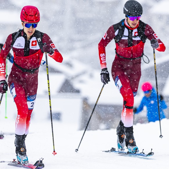 Kistler (links) als Sechster und der Bündner Arno Lietha (rechts) als Vierter hatten im Einzel die Medaillen verpasst, obwohl sie im Final zunächst in Führung gelegen hatten. Die beiden fielen wegen missglückter Wechsel aus den Podesträngen. (ram/sda)