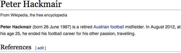 PS: Hackmair war früher Profi beim SV Ried und Wacker Innsbruck. Zudem spielte er in diversen U-Nationalmannschaften Österreichs, bevor er 2012 mit 25 zurücktrat. Sein englischer Wikipedia-Eintrag besteht aus zwei Sätzen, welche wir hier gerne präsentieren: