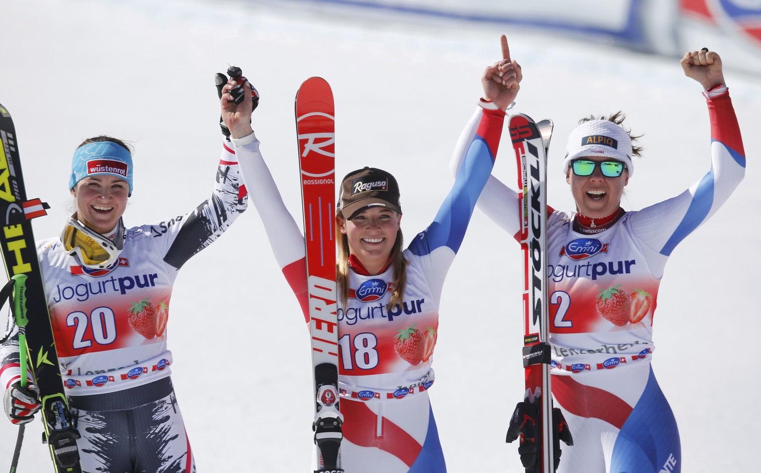 Angeführt von Lara Gut zeigen die Schweizerinnen in der Abfahrt von Lenzerheide eine ganz starke Leistung. Wäre die Österreicherin Elisabeth Görgl nicht gewesen, hätte Swiss-Ski gar einen dreifachen Erfolg feiern dürfen. Denn Fränzi Aufdenblatten landete in ihrem allerletzten Weltcuprennen als Dritte auf dem Podest, und Fabienne Suter klassierte sich als Vierte.