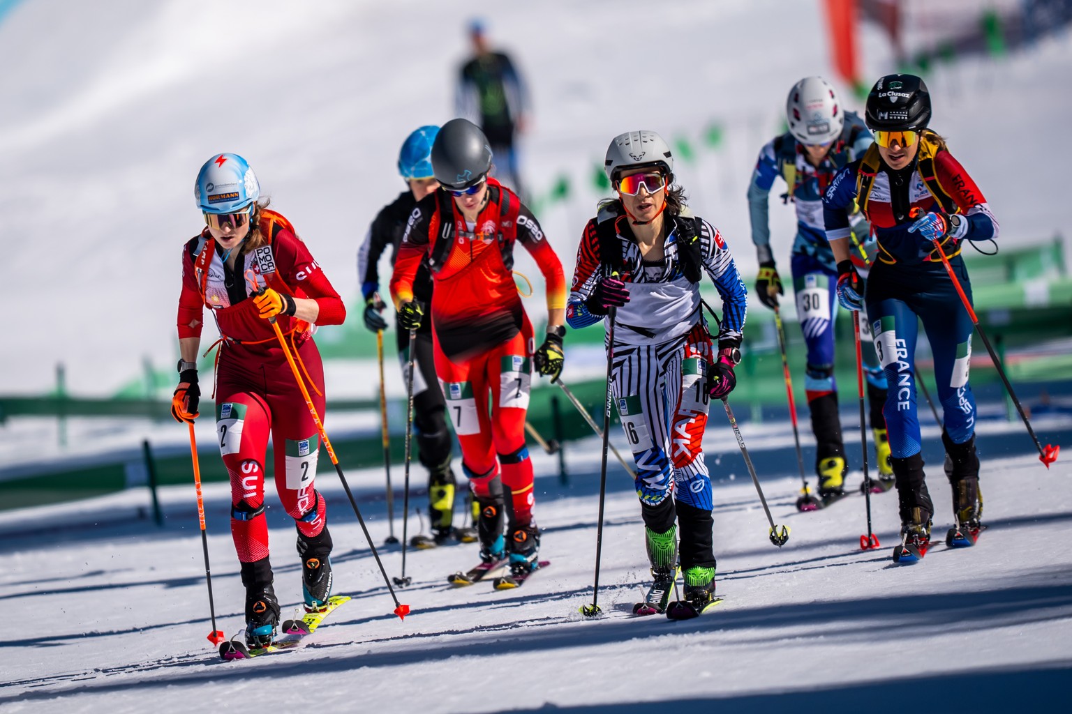Mit den Tourenski durch den Tiefschnee, auf die höchsten Punkte der Berge und anschliessend eine Abfahrt – am besten weit weg, abseits der Piste – ohne andere nervige Skifahrerinnen und Skifahrer auf der Strecke. So stellen sich die meisten das Skitouren vor. Im Wettkampfsport (auch Ski Mountaineering genannt) in der Sprint-Disziplin läuft das Ganze aber etwas anders ab. Sechs Athletinnen beziehungsweise Athleten starten gleichzeitig auf dem präparierten Kurs. Einen Teil der Strecke absolvieren sie mit den Skiern an den Füssen, einen anderen Abschnitt ohne. An der WM, gut ein Jahr vor Olympia, zeigen die Schweizerinnen und Schweizer, dass sie zu den Medaillen-Kandidatinnen und -Kandidaten gehören.